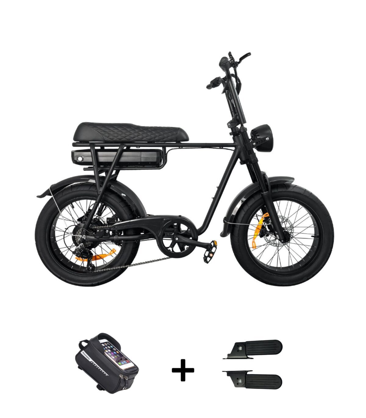 V20 Pro Fatbike Zwart + Achterzitje + Voetsteunen + Voorrek + Fietstas