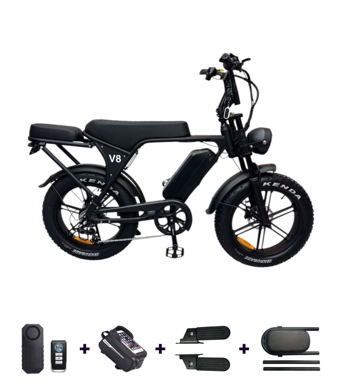 De OUXI V8 is de nieuwste generatie elektrische fatbike: krachtiger, stoerder en comfortabeler dan ooit. Met zijn robuuste frame, brede 20×4” banden en sterke 48V 15Ah accu is de OUXI V8 klaar voor elk avontuur — van stadsritten tot offroad paden.