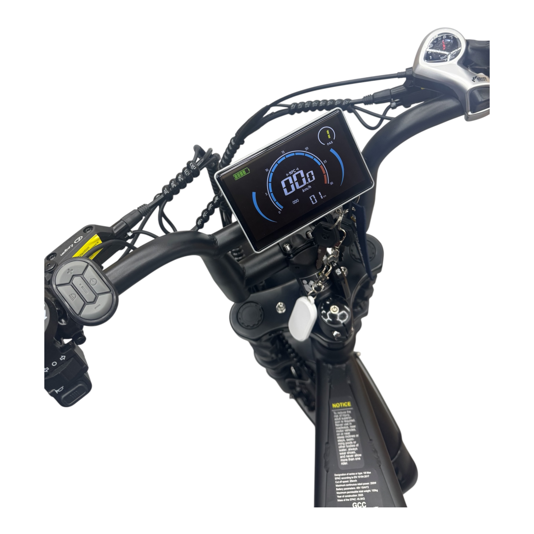 Deze fatbike is uitgerust met hydraulische schijfremmen, waardoor je altijd snel en gecontroleerd tot stilstand komt, ongeacht de omstandigheden. Het moderne NFC display zorgt voor extra gebruiksgemak en beveiliging: je start de fiets eenvoudig met een NFC-tag.