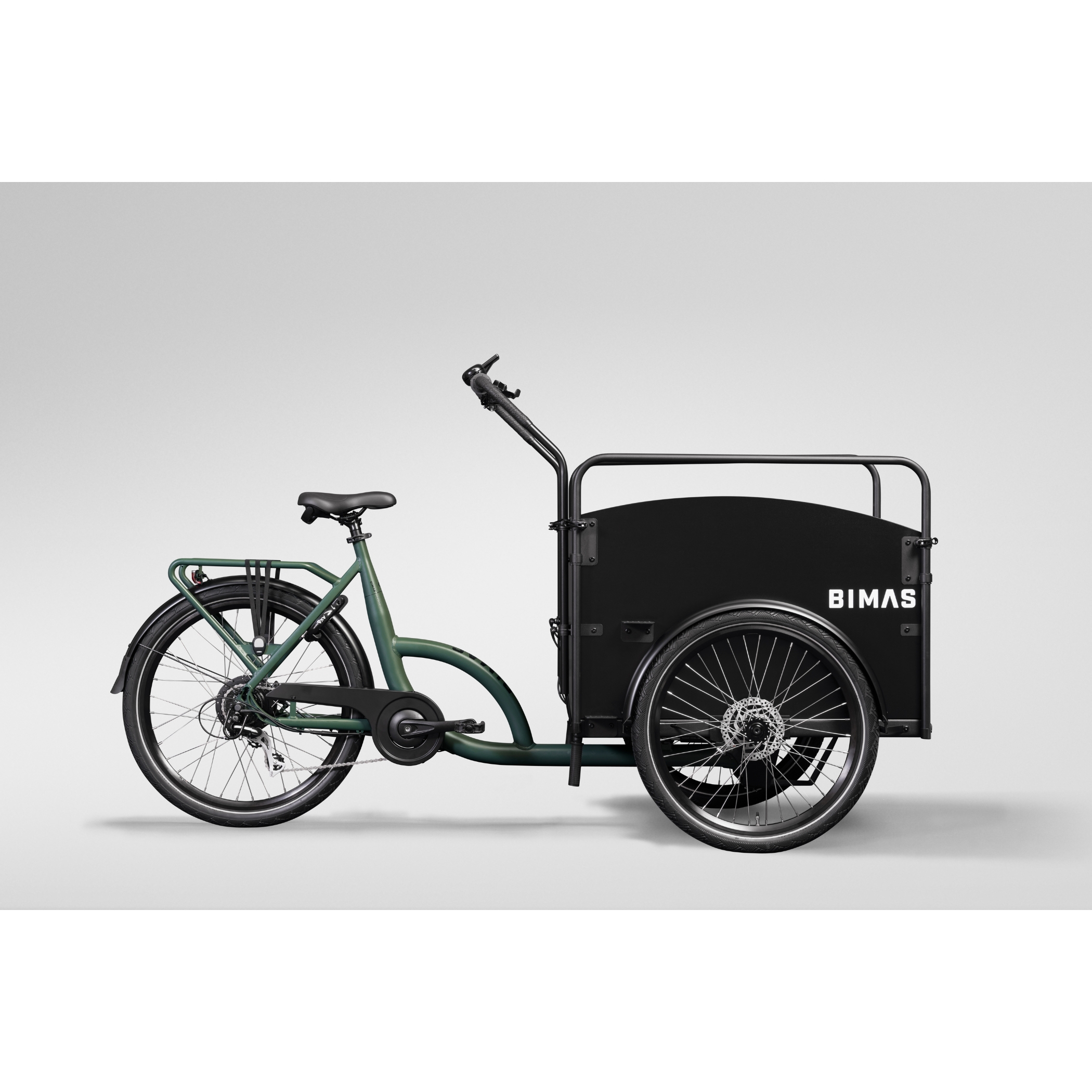 De Bimas eCargo 3.3 Economy in British Racing Green straalt luxe, rust en klasse uit. Een stijlvolle kleur die past bij gezinnen en ondernemers.